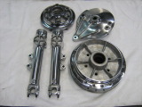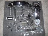 老舗大手部品メーカー・某有名老舗ビンテージハーレ専門店が利用しているメッキ工場にて、再利用できるメッキパーツを厳選・各種類のメッキ毎に仕分けし、大物は古いメッキを取除いた後、傷消処理・バフ後、再メッキしております。